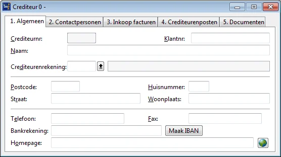 In dit scherm registreer je de naw- en bankgegevens van de crediteur.