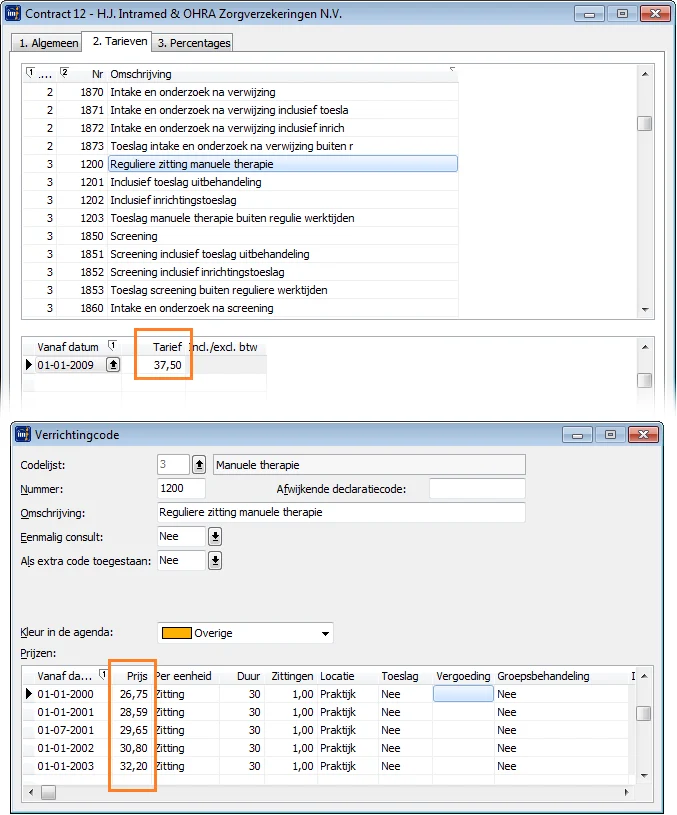 Op dit tabblad vul je verschillende zaken in, die later in Intramed gebruikt zullen worden bij behandelseries, behandelepisodes en salariëring.