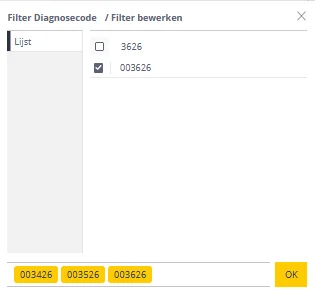 - Klik op het potloodje achter het filterveld ‘Diagnosecode’.