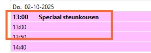 En ook hier geldt: had je in die roosterregel ook een tekst ingetypt, dan zie je die wel in een extra agenda regel.