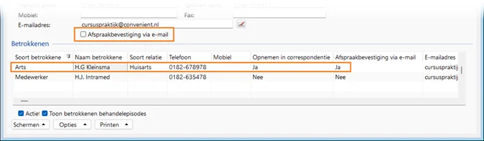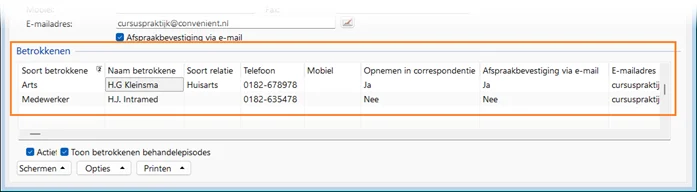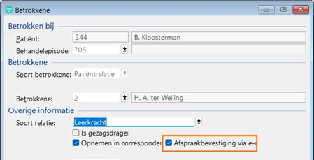 Bij betrokkenen kon je al aangeven, of ze opgenomen moeten worden in de correspondentie. Nieuw is, dat je nu kan aangeven, of afspraakbevestigingen ook naar een betrokkene worden gestuurd.