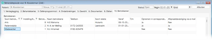 In de patiëntgegevens op tabblad ‘1. Algemeen’ is nu een tabel met betrokkenen opgenomen, het aparte tabblad ‘Betrokkenen’ is nu verwijderd: