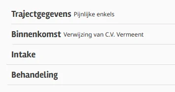 Voor de fysiotherapie is het intakeproces aangepast. Dit proces bestaat nu uit 2 stappen: de stap ‘Patiëntgegevens’ en de stap ‘Anamnese’.