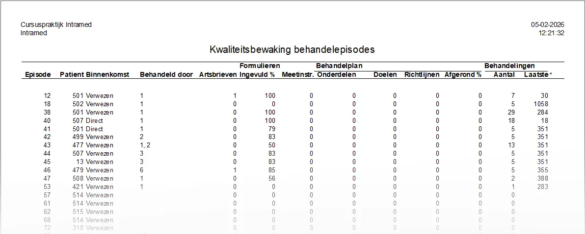 Via het rapport “Kwaliteitsbewaking behandelepisodes” kun je inzicht krijgen in de wijze waarop medewerkers hun verslaglegging doen.