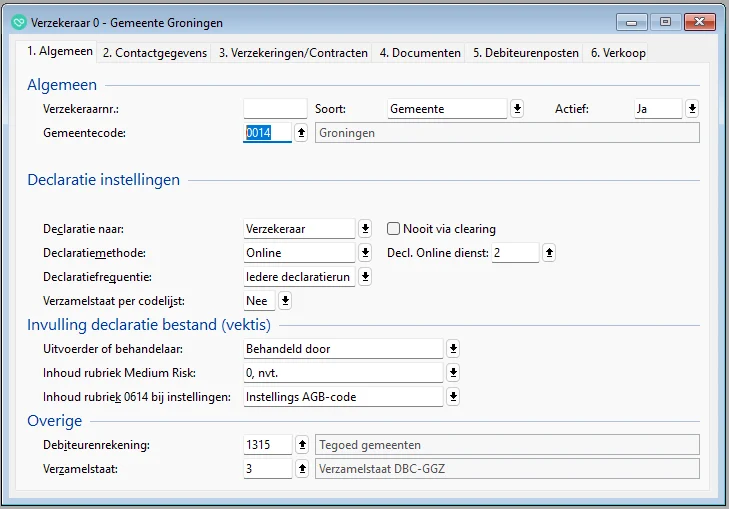 - Vul bij ‘Decl. Online dienst’ de dienst voor declareren naar Vecozo in.