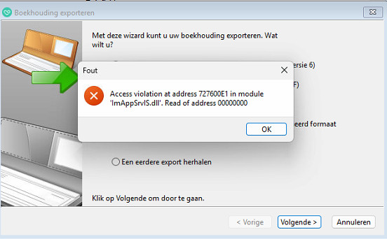 Ik krijg een Access violation bij exporteren naar Twinfield. Hoe los ik dit op?