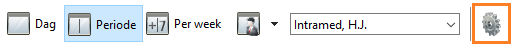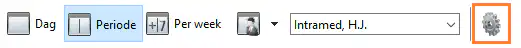 Alleen in de ‘Periode’-weergave is rechts bovenin een tandwiel icoon beschikbaar: