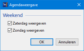 Klik hierop, en je ziet het scherm ‘Agenda weergave’. Hierin vink je uit/aan, welke weekend dagen je wilt zien: