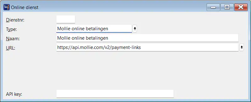 3. Vul bij API key, de gekregen API-key van Mollie in, de rest wordt automatisch ingevuld.